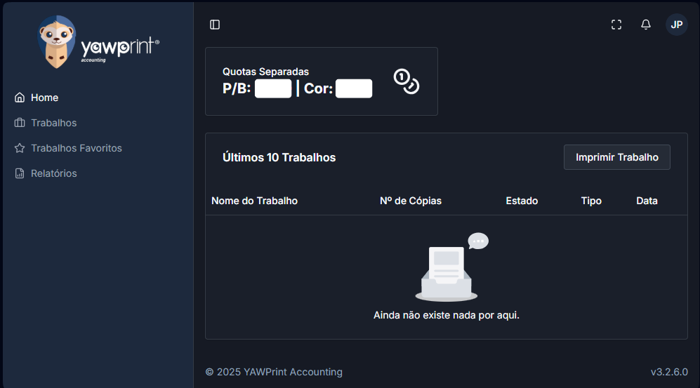 3 - Se tem quota/saldo que lhe permitam imprimir o trabalho que vai submeter. Para tal deve aceder ao portal de impressão Yawprint que é a face visível deste sistema e onde é possível verificar: